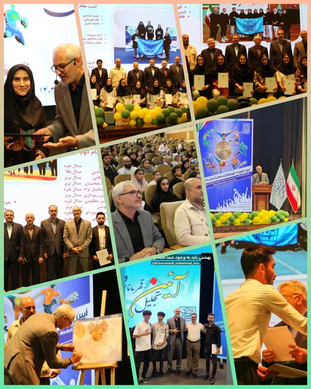 تالار ابوریحان مرکز همایش های بین المللی دانشگاه شهید بهشتی در شب عید سعید غدیر خم با حضور ریاست محترم دانشگاه، اعضا هیئت رئیسه، روسای دانشکده ها و اساتید و کارکنان، میزبان دانشجویان قهرمان و مدال آور، مربیان، سرپرستان و خانواده های این عزیزان بود. در این مراسم از ۵۰۰ ورزشکار مدال آور در مسابقات جهانی، آسیایی، ملی، کسب سهمیه منطقه یک کشور، استانی، المپیاد شاهد و ایثارگر ،قهرمانی جهانی تیم روباتیک و مسابقات همگانی در دو بخش دانشجویی و کارکنان تجلیل شد. این آئین باشکوه همراه با برنامه های متنوعی بود. گرامیداشت و یاد شهید رئیسی و شهدای خدمت، قرائت جمعی بیانیه دانشجویان ورزشکار دانشگاه شهید بهشتی در حمایت از مردم غزه، مسابقه، اجرای زنده موسیقی، رونمایی از طرح مدال ورزشی ویژه دانشگاه شهید بهشتی، مولودی عید غدیر خم، کلیپ انتخابات، پخش کلیپ قهرمانان و مدال آوران و جشن تولد برای متولدین تیرماه از جمله برنامه های متنوع این مراسم بود. در بخشی از این مراسم معاون دانشجویی دانشگاه شهید بهشتی ضمن گرامیداشت یاد شهید رئیسی و شهدای خدمت و تبریک عید غدیر خم این میزان از حضور موفق دانشجویان در میادین ورزشی را به دانشجویان ورزشکار، مربیان و سرپرستان تبریک گفتند و به استمرار حمایت از ورزش دانشگاه تاکید نمودند. دکتر احمدی به دو موضوع "دانشگاه شهید بهشتی دانشگاه دوستدار ورزش" و "دانشگاه شهید بهشتی دانشگاه بدون دخانیات" به عنوان دو اولویت اصلی و برنامه ریزی شده برای سال تحصیلی۱۴۰۴-۱۴۰۳ اشاره داشتند. دکتر محمدرضا برومند مدیر مرکز تربیت دانشگاه نیز ضمن گزارش عملکرد و دستاوردها به تشریح برنامه های مرکز تربیت بدنی دانشگاه در سال پیش رو پرداختند. در بخش دیگری از آئین تجلیل از قهرمانان و مدال آوران ورزش دانشگاه جناب آقای دکتر سیدمحمود آقامیری ریاست محترم دانشگاه ضمن گرامیداشت یاد و نام شهید رئیسی و همراهان و تبریک عید سعید غدیر، و بر شمردن اهمیت این عید بزرگ ،موفقیت چشمگیر و کسب بیش از ۲۵۰ مدال توسط دانشجویان ورزشکار دانشگاه در مسابقات مختلف قهرمانی در سطح بین المللی، ملی و منطقه ای را تبریک گفتند و ابراز مسرت داشتند. رئیس دانشگاه در ادامه سخنان خود ضمن تببین تفاوت ویژگی‌های قهرمان و پهلوان، توصیه هایی به ورزشکاران داشتند. در این آئین که خانواده تعدادی از دانشجویان نیز حضور داشتند ضمن اهدا لوح تقدیر، بیش از ۱۰ میلیارد ریال به عنوان جایزه و پاداش نقدی تقدیم قهرمانان و مدال آوران شد. در پایان مراسم با گرفتن عکس های یادگاری و صرف شام در رستوران دانشگاه در فضایی صمیمی مراسم خاتمه یافت.