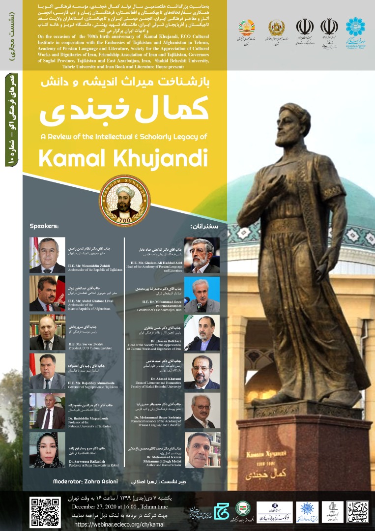 برگزاری نشست بازشناخت میراث اندیشه و دانش کمال خجندی 9075 بازدید print share 07 دی به مناسبت بزرگداشت هفتصدمين سال تولد کمال خجندی، معروف به شیخ کمال از عارفان و شاعران پارسیگوی قرن هشتم هجری،...