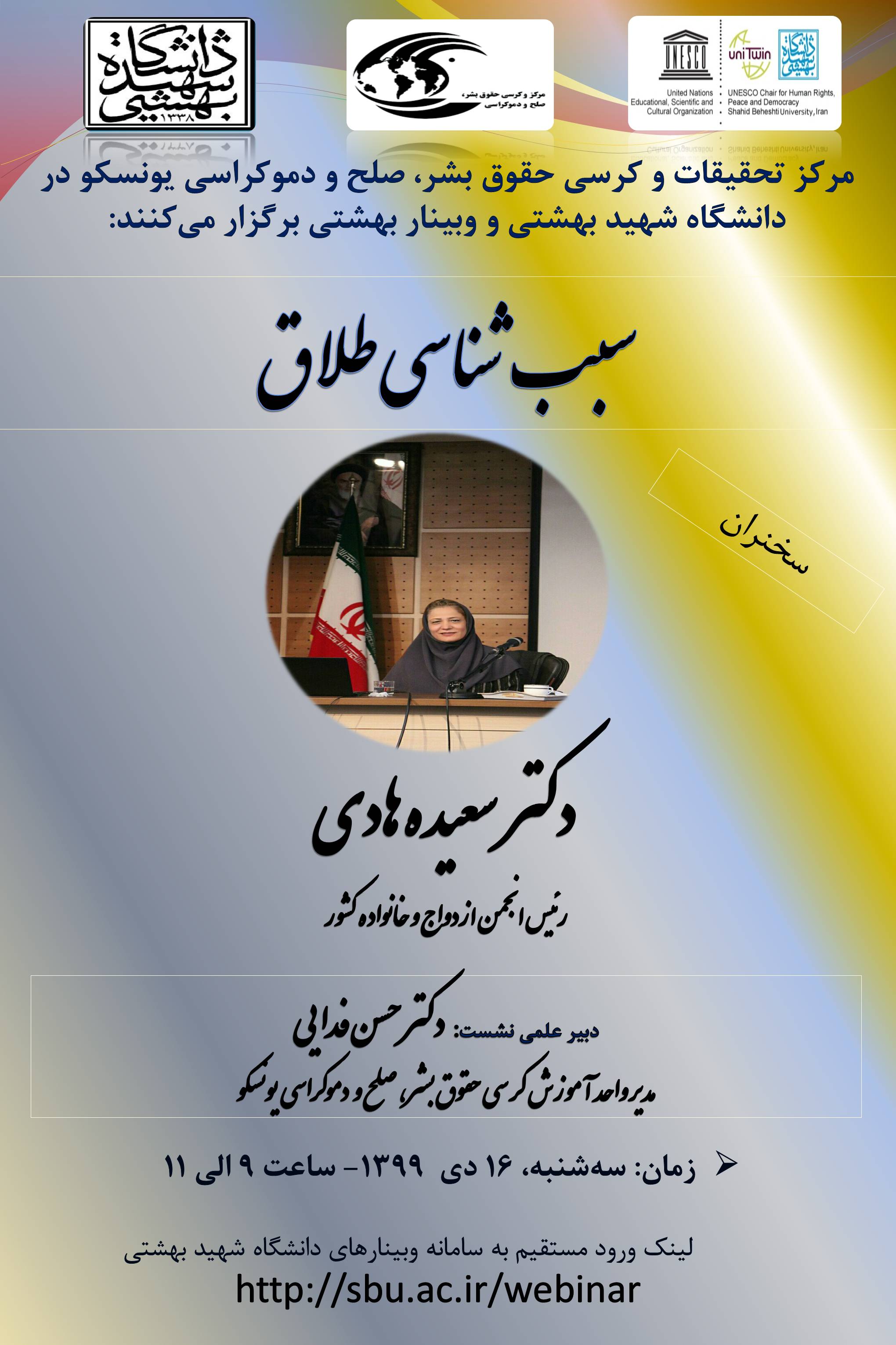 برگزاری وبینار سبب شناسی طلاق 9645 بازدید print share 16 دی به اطلاع دانشجویان، پژوهشگران و علاقمندان محترم می رساند مرکز تحقیقات و کرسی حقوق بشر، صلح و دموکراسی یونسکو در دانشگاه شهید بهشتی با...